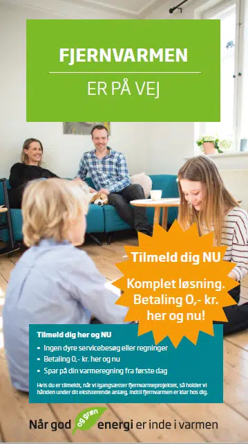 Du kan tilmelde dig via den elektroniske blanket på vores hjemmeside. Har du modtaget en tilmeldingsblanket i din postkasse, skal du bare sætte kryds X i feltet "Ja Tak" til Grøn Omstillingsbidrag, når du tilmelder dig fjernvarmen.