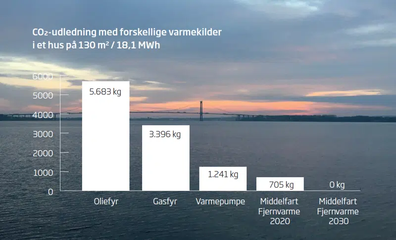 CO2-udledningen er lavere end opvarmning med en individuel varmepumpe.