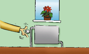 Det er termostaterne, der regulerer varmen i de enkelte rum. De er forsynet med en føler i håndtaget eller en fjernføler placeret på væggen eller under radiatoren. Termostaten/føleren skal sidde frit og må ikke dækkes til af gardiner, møbler eller lignende.