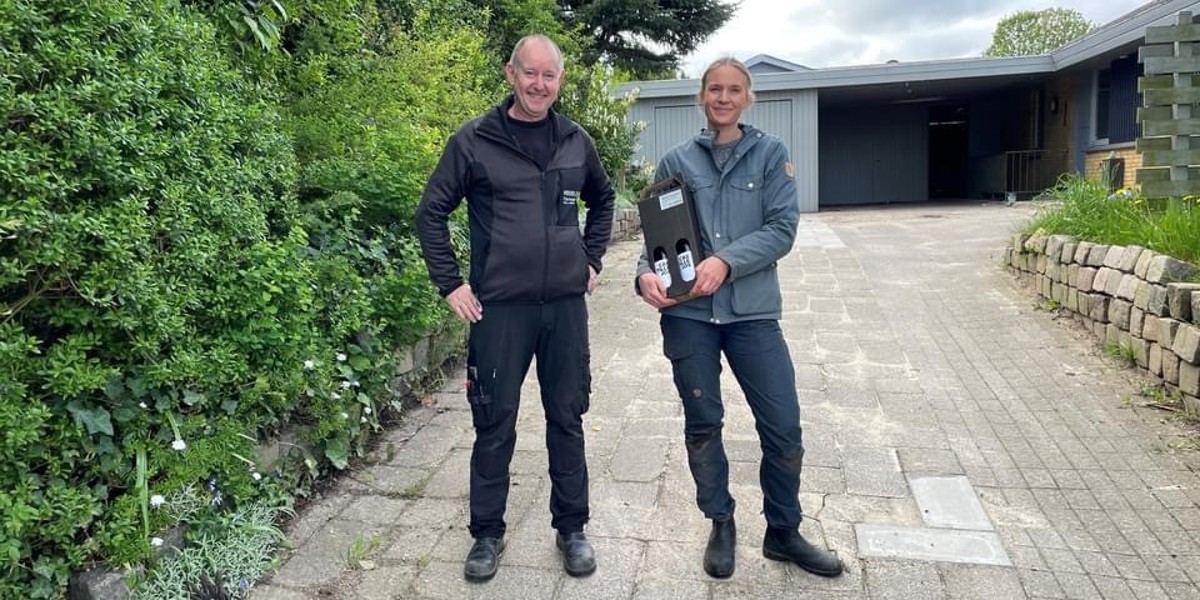 Derfor har Niels Jørgen fra Middelfart Fjernvarme afleveret et par flasker vin i Strib, hvor vores ku...